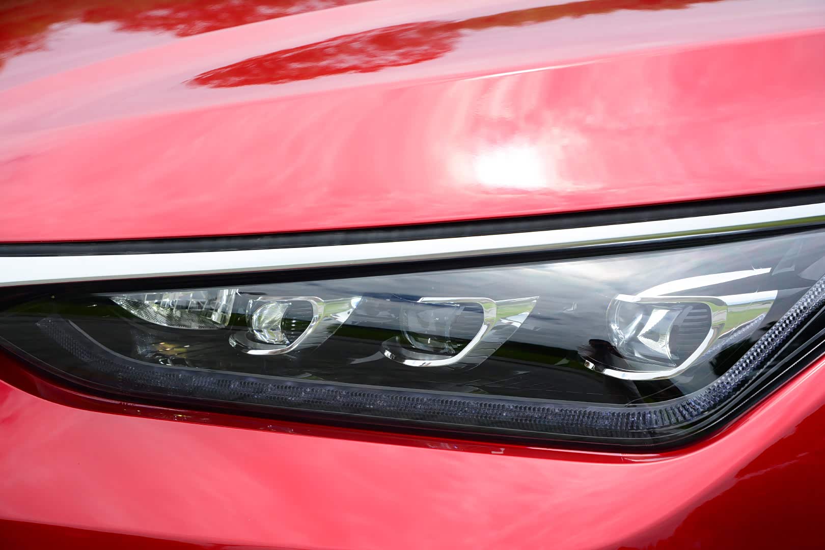 2021款唐EV实际上是中期改款后的车型。外观上依然采用龙脸造型,这套比亚迪标志性设计语言在唐EV上的表现是最为大气的,因为车头体积大、格栅开口大,所以“龙脸”的张力最强。并且格栅镀铬条非常粗壮,中文汉字“唐”这一Logo嵌在中间也非常有气势。另外LED大灯为3个大颗的透镜块组成,高级感非常强。
