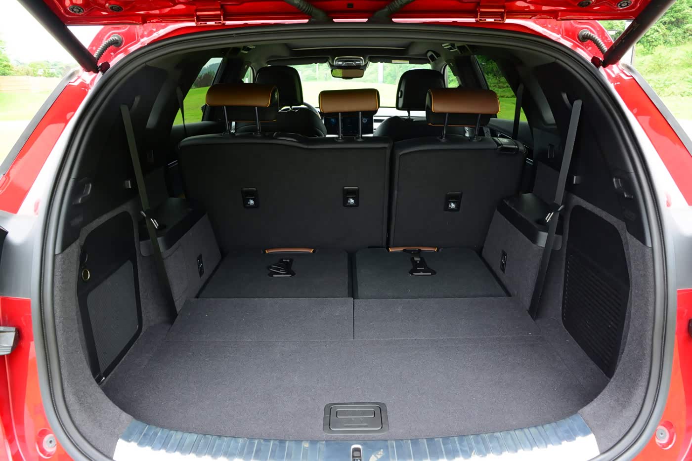 不过唐EV的第三排只能算中规中矩,乘员进出第三排需要通过第二排椅背放倒并前移实现,它的滑轨不如大众途昂/揽境那么顺滑,动它要多费一点力气,脚步开口也稍微窄了一点。第三排腿部空间比较一般,以10多岁青少年乘坐和应急为主,成年人的话坐半小时以上可能就会觉得不适。所以唐EV还是一辆“两排乘坐”为主的车型,第三排偶尔拓展乘坐功能,大部分时间起到的应该是扩大尾箱的作用——它椅背放倒后平整度的确是很好的,让唐EV的尾箱表现非常不错。