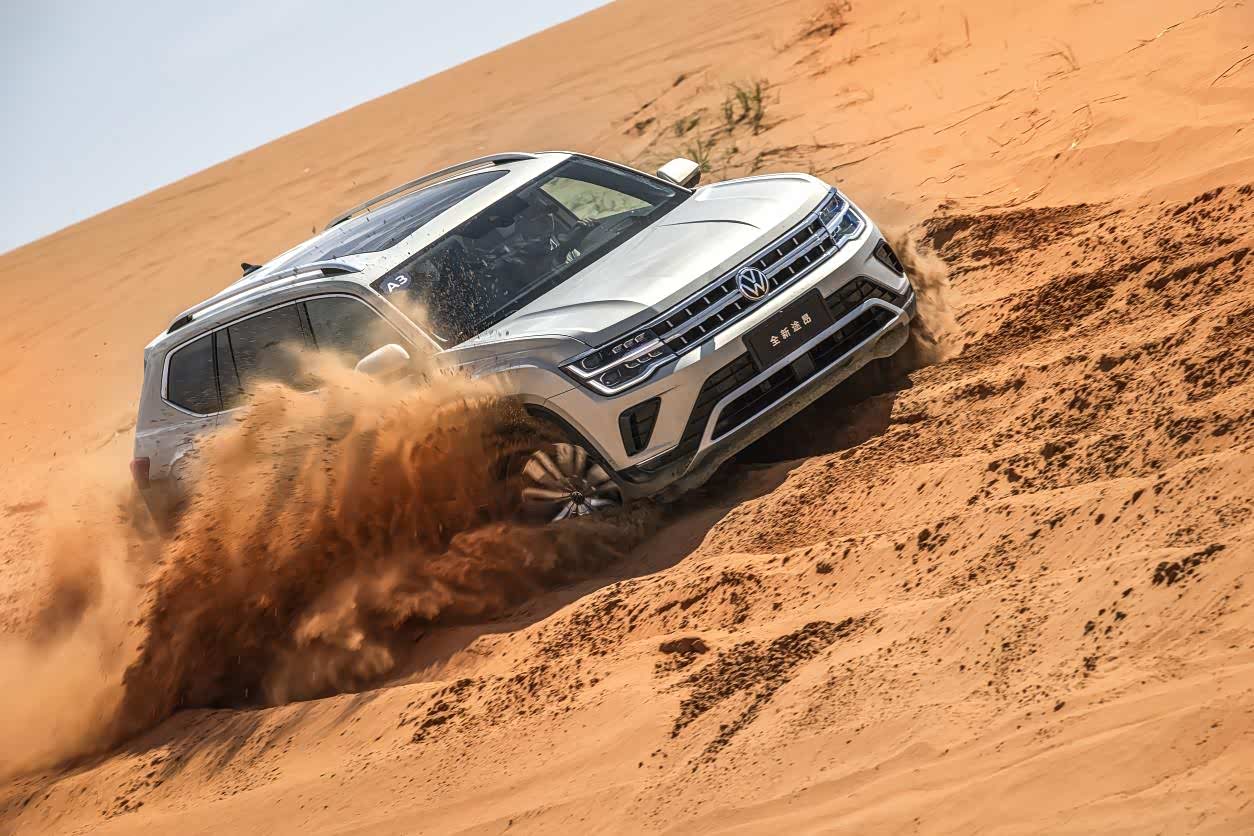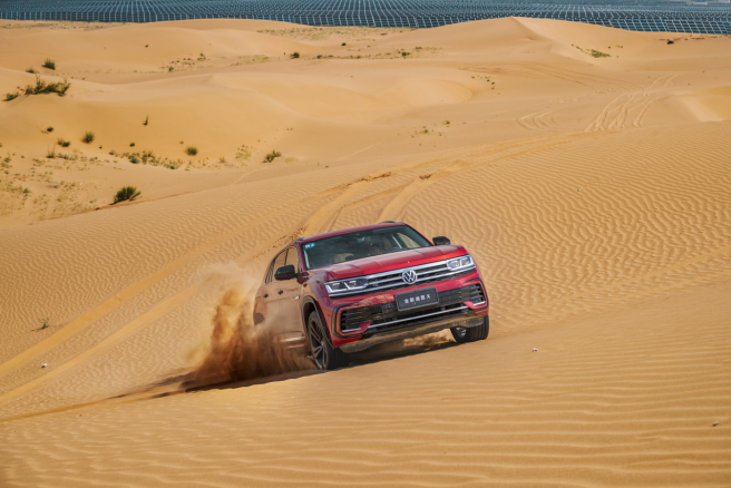 此次试驾的重头戏,放在了腾格里沙漠的沙漠试驾。到达试驾场地前,笔者觉得这样的体验项目大可不必,一方面由于途昂/途昂X的车型定位,并不会有太多用户会开着它去到这样的特殊使用场景;另一方面,则是此前公路驾驶时,途昂/途昂X动力系统呈现出的特性,似乎并不适合冲沙这样的剧烈运动。
