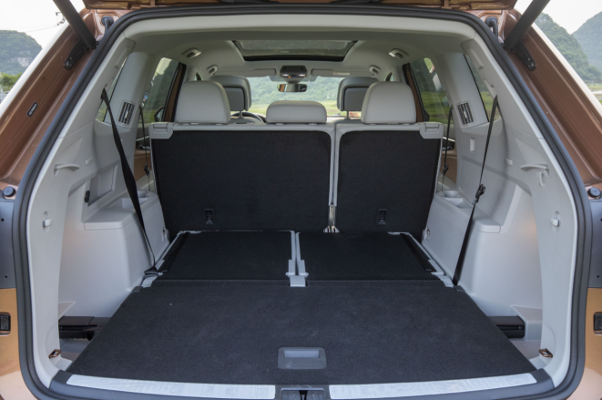 途昂X虽然只有五座版本,但其后排空间同样达到了“大五座”标准。无论是腿部空间还是头部空间,均能够满足绝大多数身材的乘客,头部空间也并没有受到尾部造型的影像。并且在放倒第二排座椅的状态下,后备箱空间容积可扩充至1791L,平整的地台可以直接放上一个充气床垫使用。