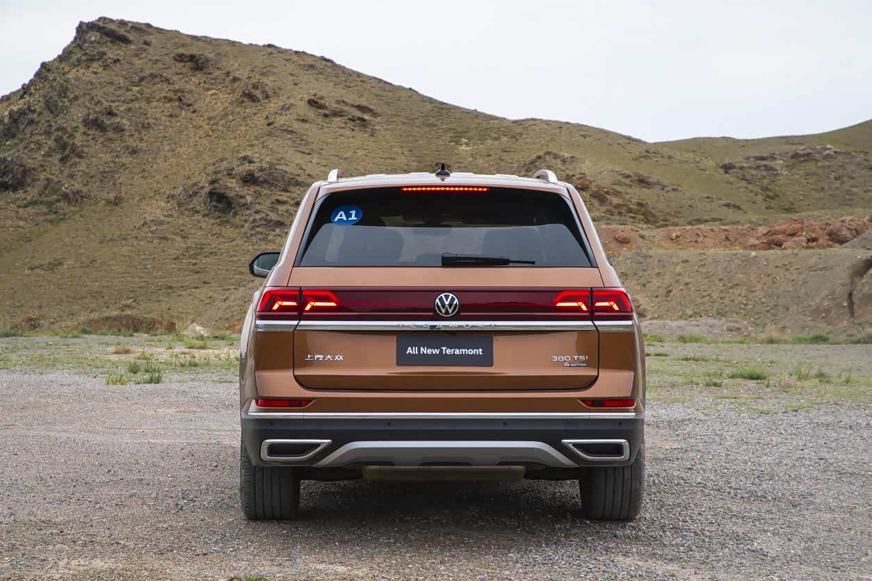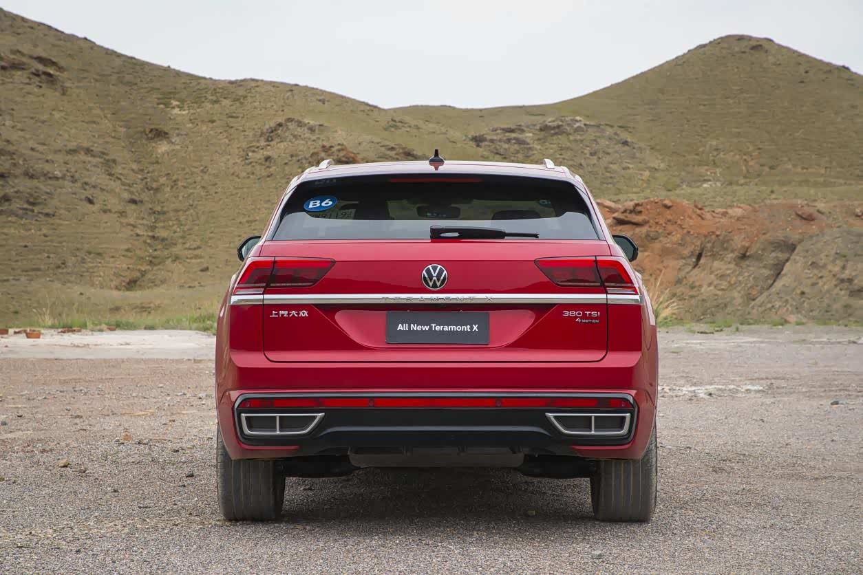 途昂X虽然没有使用贯穿式尾灯设计,但两侧灯组用一根粗壮的镀铬饰条相连,拉低了尾部的视觉重心。并且在Coupe造型的影响下,途昂X有着更为低矮的“低趴感”,在与途昂做出明显区分的同时,也强调出了不同的车辆风格。排气口造型也比途昂更加激进,但两车的排气口均为装饰。
