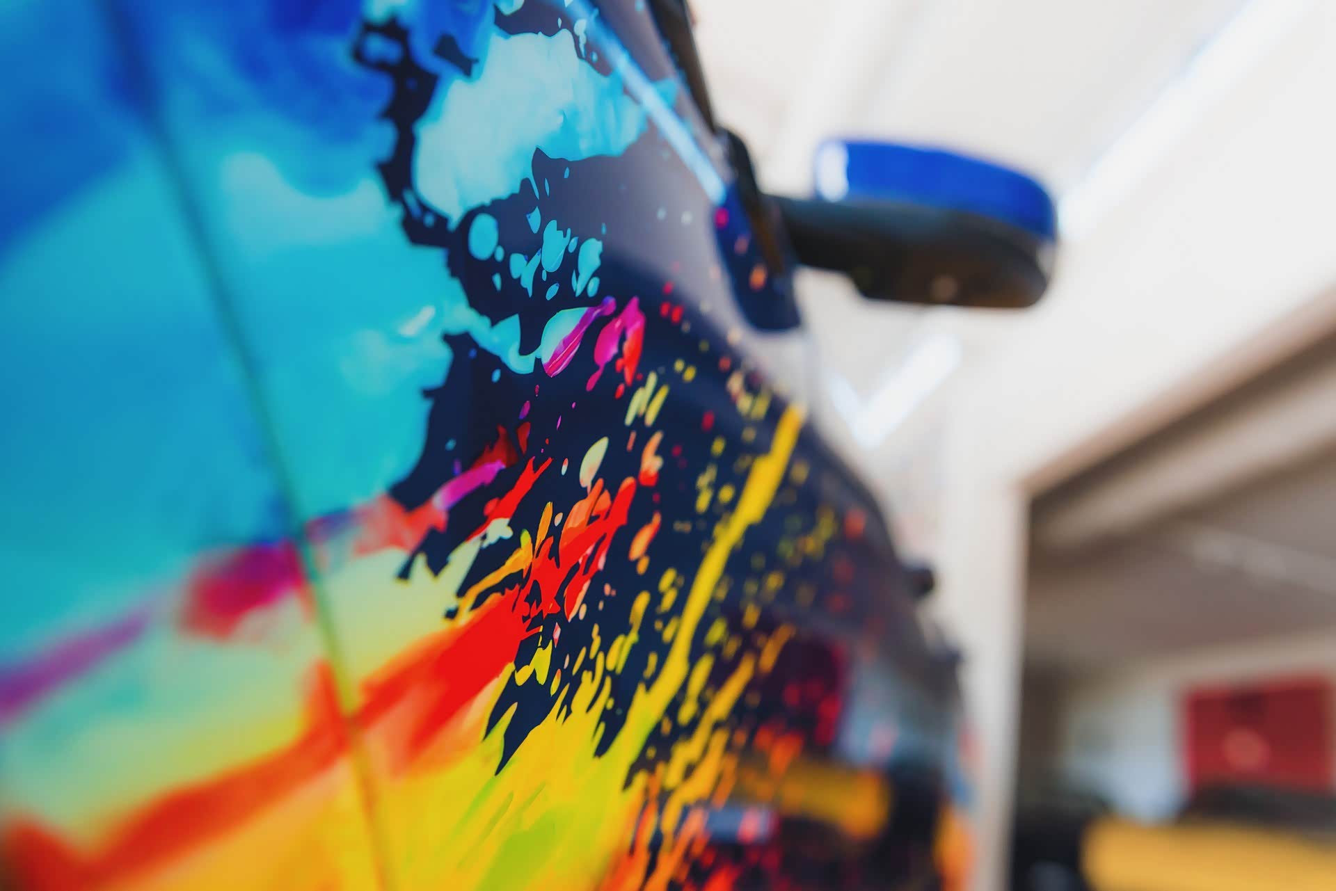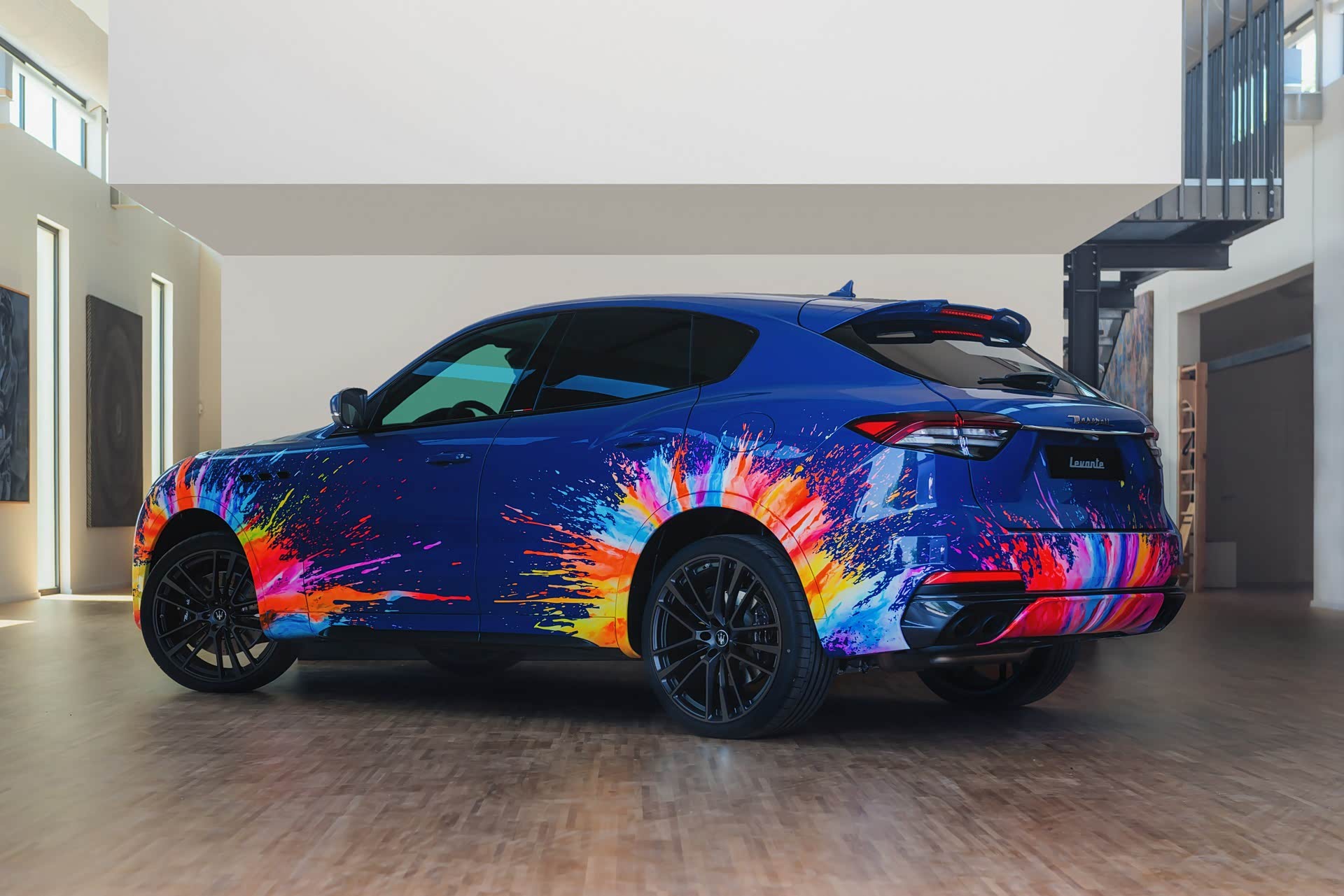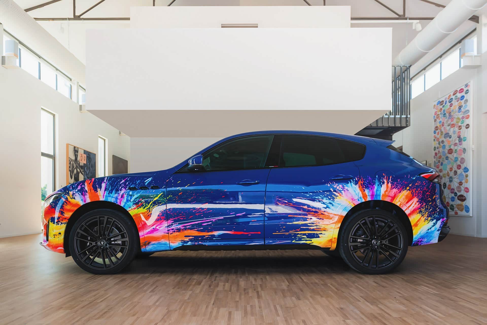 色彩的飞溅继续在车内进行,如艺术般的装饰与黑色皮革形成对比。与标准版Levante Trofeo所采用的碳纤维和木质装饰相比,这是一个令人耳目一新的突破。