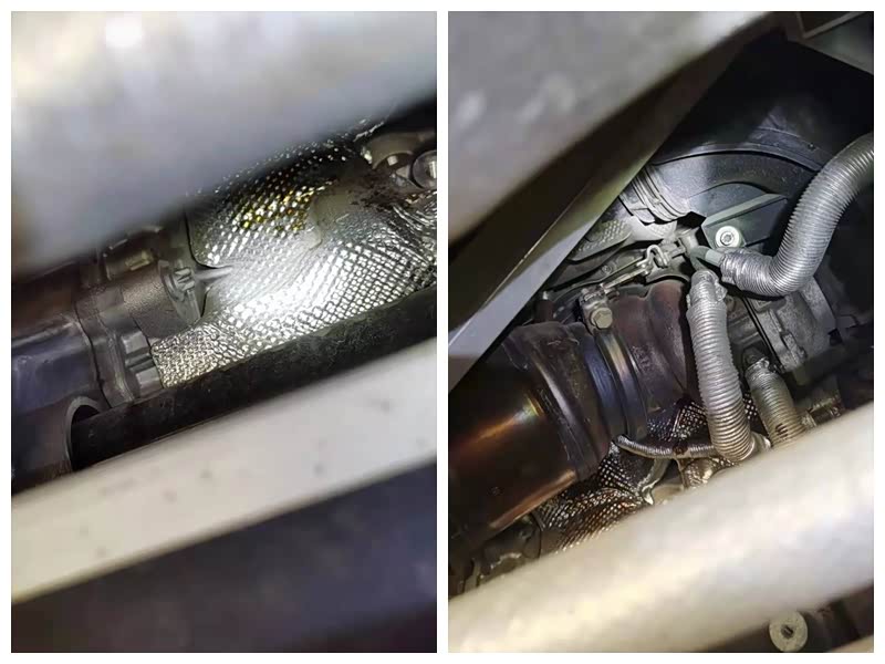 随后检查到发动机和变速箱连接处固定螺丝无拆卸痕迹,排除了发动机和变速箱的吊装分解维修。且排气管固定螺丝无拆卸和改装。