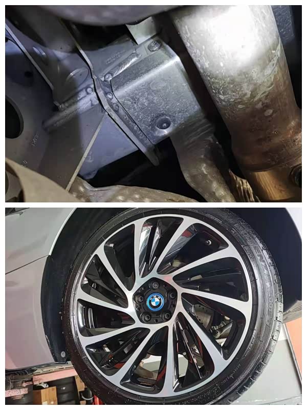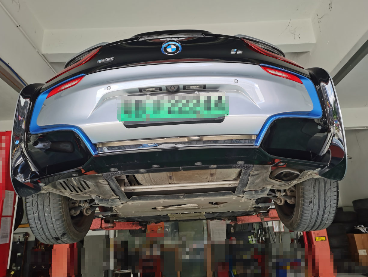 最后检查到后防撞梁无拆卸变形的痕迹,四轮轮胎均为原厂轮胎,轮毂和轮胎表面无明显的剐蹭和变形痕迹,且四轮减震器无拆卸和渗油痕迹。只是这轮毂实在是配不上宝马i8这酷炫的外观啊。那经过两个多小时的检测,这辆车的检测就基本结束了,整体来说车况还是很不错的,到手后,可先保养一下油液,再注意一下改装的音响,不愿意用可以拆卸复原,然后就是回4S店变更车主信息,后期可以享受一些车辆质保召回服务。