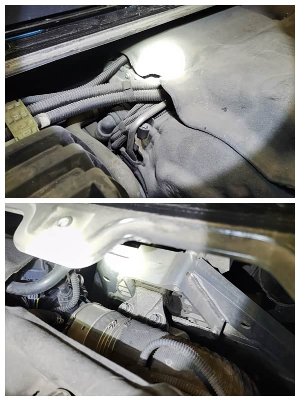 仔细观察了一下发动机部分,发现气门室盖垫无拆卸的痕迹,发动机上部机脚垫固定螺丝无拆卸痕迹,也没有漏油渗油的情况,看来三缸机确实没有V8、V10那么娇贵。