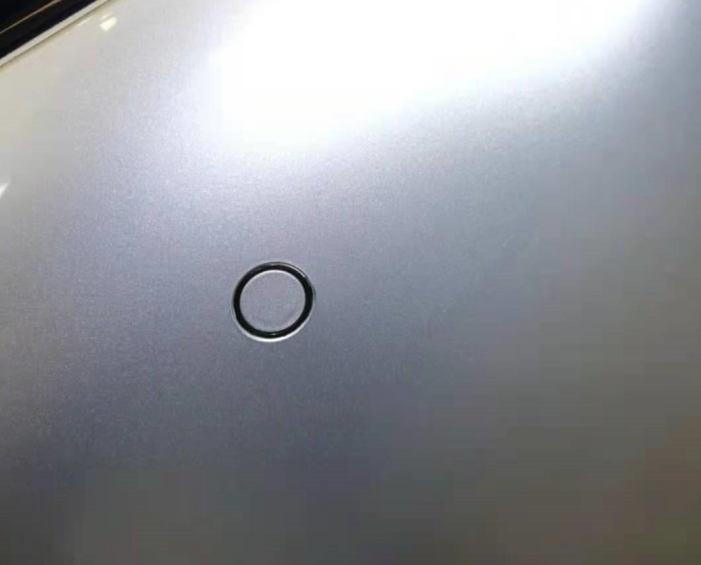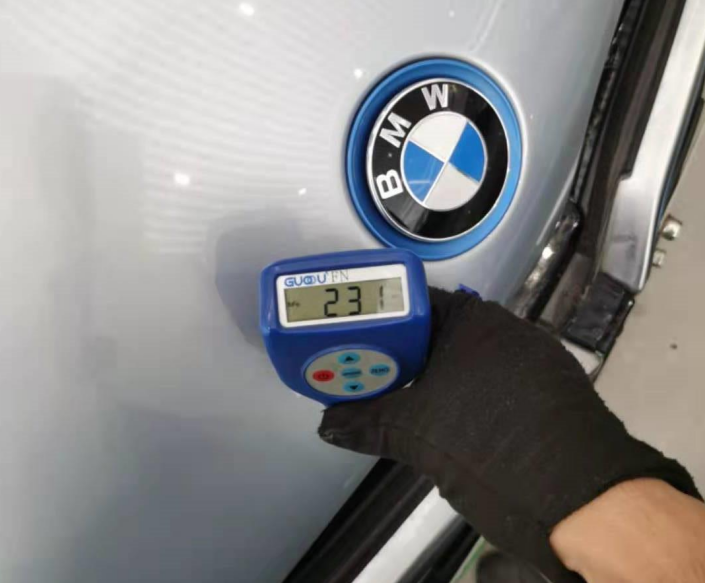 接下来是前机盖漆面情况,在灯光的照耀下,还是能找到喷漆的脏点,以及边缝处漆面断层和剌手感。拿出专业仪器测量,漆面数值也符合二次喷漆,但是没有找到钣金修复的痕迹。