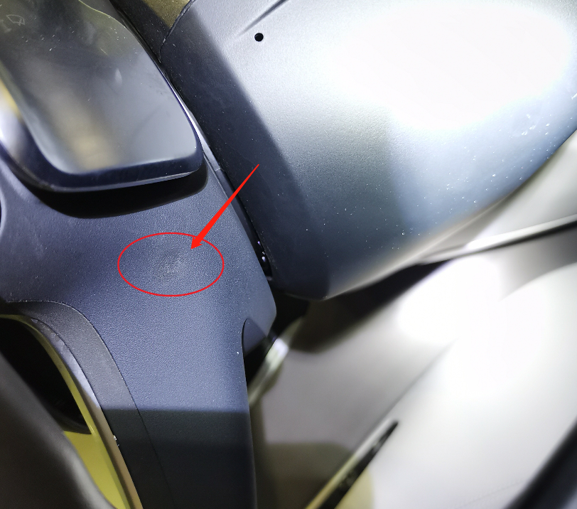 还好车辆没有贴车衣,这样可以让我更好地观察漆面情况,可以看到前杠有飞漆和脏点,肯定是喷过漆了。