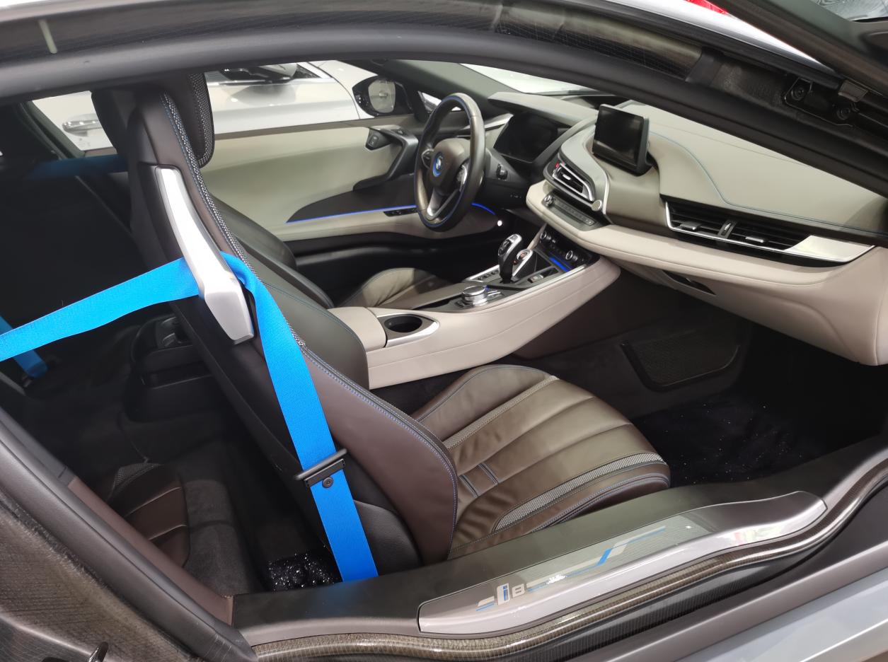 可以看到宝马i8内饰的布局风格和车辆外观一样,科技感和未来感很强,符合很多追求科技感年轻人的审美。并且一眼看上整体并无明显的破损和磨损痕迹很大的地方。下面来看看细节处。