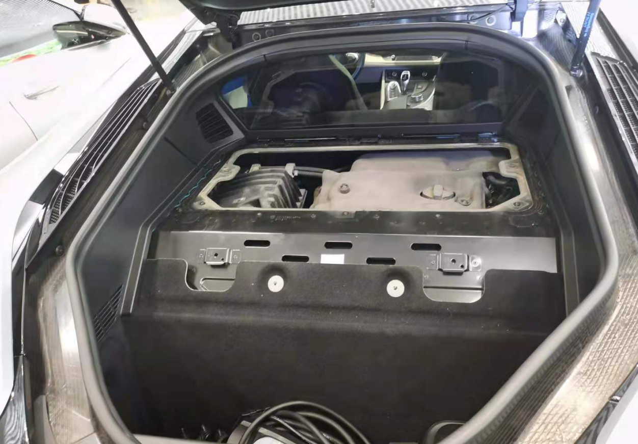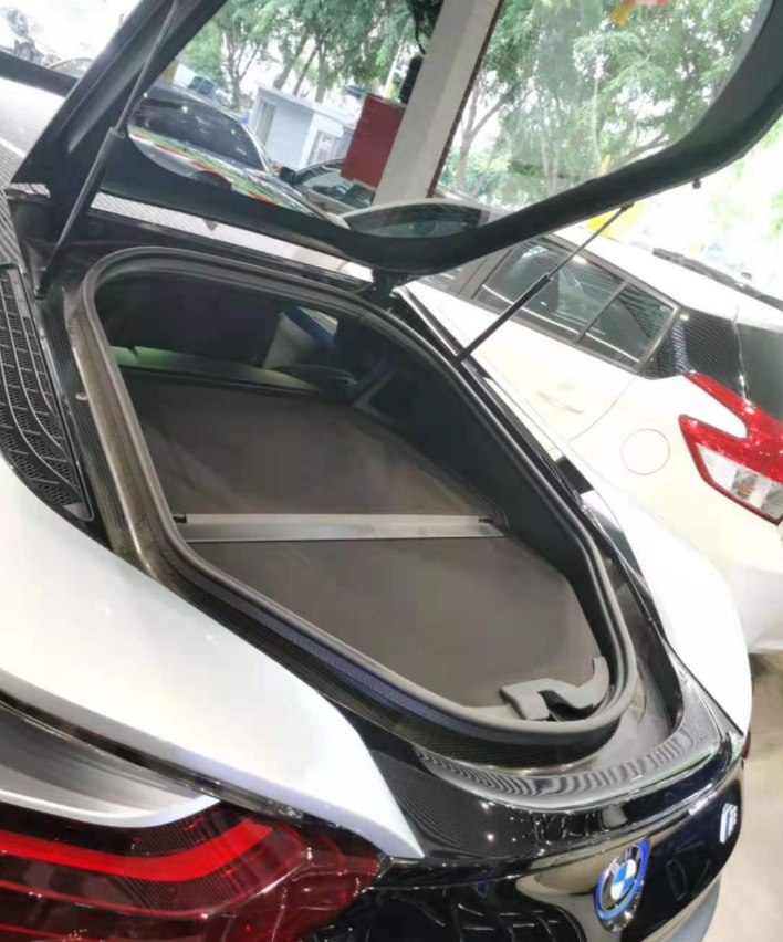 肯定有人会有疑问:说检测发动机,为何放个后备箱图片?因为这款宝马i8是中置四驱,发动就“藏”在这而!它的动力系统是由一台1.5T的三缸发动机和一台发电机组成,零百加速可以达到4.4秒,动力上还是不错的,加上中置四驱,除了不是纯燃油车,i8其实差一点就算真正的超跑了。而且i8还有一点吐槽的就是储物空间太少了,是真的不富裕,好不容易有点吧,还贼小。