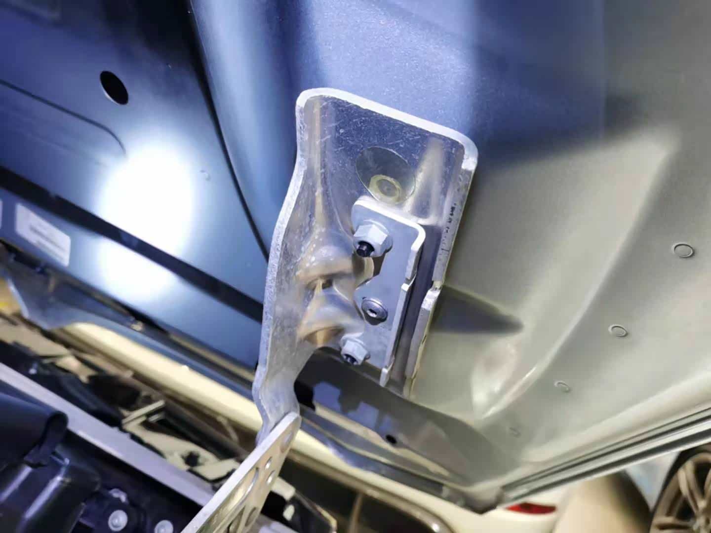 前机舱部分首先看了一下前机盖固定螺丝,没有拆卸和移位痕迹。