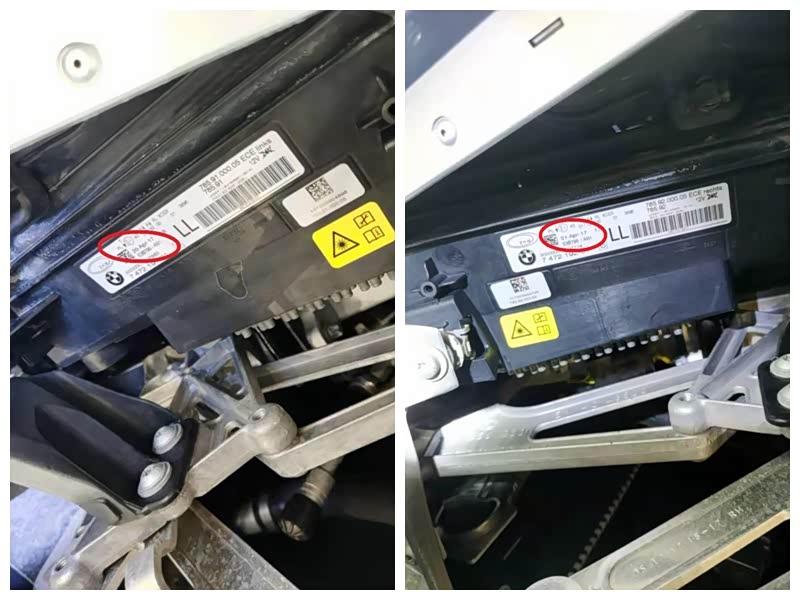 两前大灯表面无破损瑕疵,固定螺丝无拆卸痕迹,生产日期和车辆出厂日期相符。