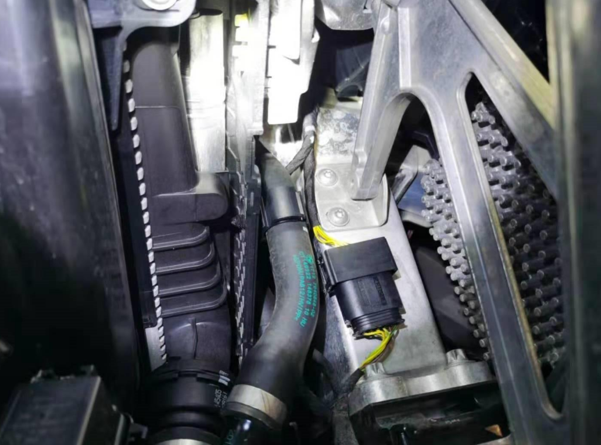 水箱框架和前防撞梁,以及周边附近固定螺丝均无拆卸的痕迹。前机舱这么一套流程检测下来,基本可以排除车辆前部存在事故的嫌疑了。接下来就是发动机部分的检测了。