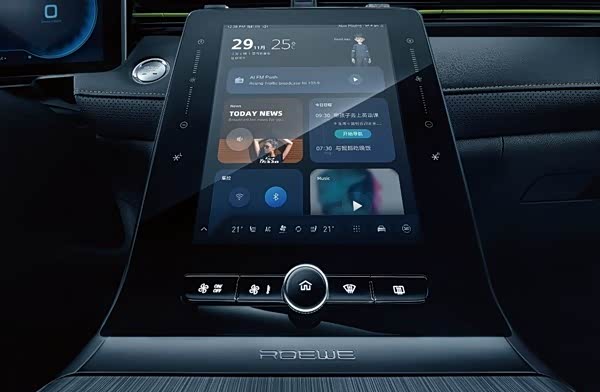 新车采用星耀龙鳞格栅、鲲鹏尾翼、19英寸星芒性能轮毂等设计,让中国传统元素更贴合国际化表达。内饰方面,全新荣威RX5 PLUS通过豪华黑铬饰件、线性律动隐藏式出风口、国潮山河纹座椅、钨钢电镀细节方向盘、12.3英寸悬浮液晶仪表和14.1英寸四曲面中控大屏的双大屏组合、I-MAX巨幕级全景天窗等打造国潮轻奢感。其中,全新荣威RX5 PLUS霁风国潮智驾版-龚俊限定版,还提供龚俊专属霁风蓝、签名、开机视频、语音包、AI形象等一系列专属配置。对于全新荣威RX5 PLUS的颜值,姜振宇给出了很高的评价:“它除了国潮美感外,也带给人很强的文化归属感和文化自信。”