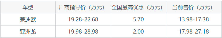蒙迪欧和亚洲龙全系优惠对比
