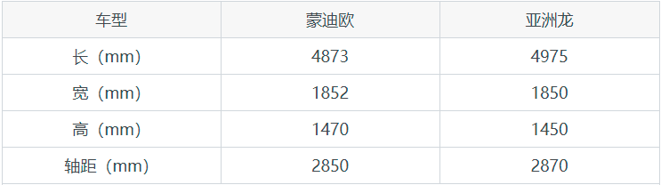 蒙迪欧和亚洲龙尺寸/空间对比