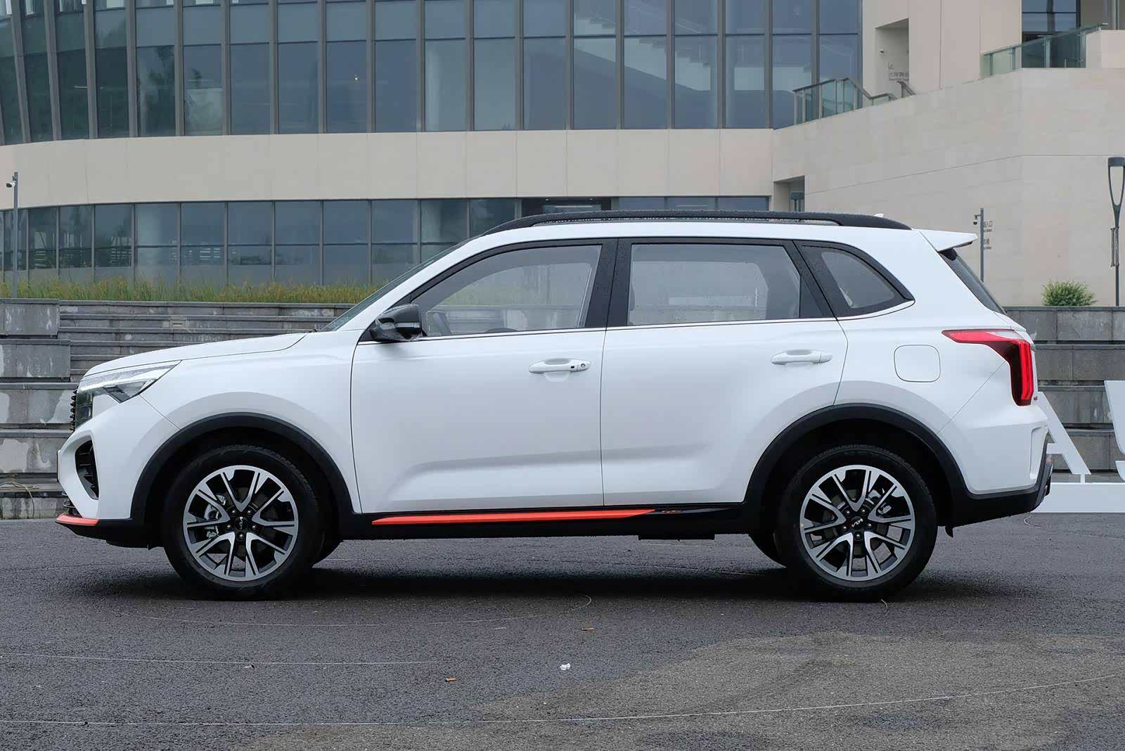 车身侧面方方正正,有着SUV标准的硬朗身段。侧包围也有橙色条点缀,车门底部的内凹线条更加突出了前后轮眉的外扩视觉效果,肌肉感油然而生。车身尺寸方面,新车的长宽高分别为4530/1850/1700mm,轴距为2640mm。