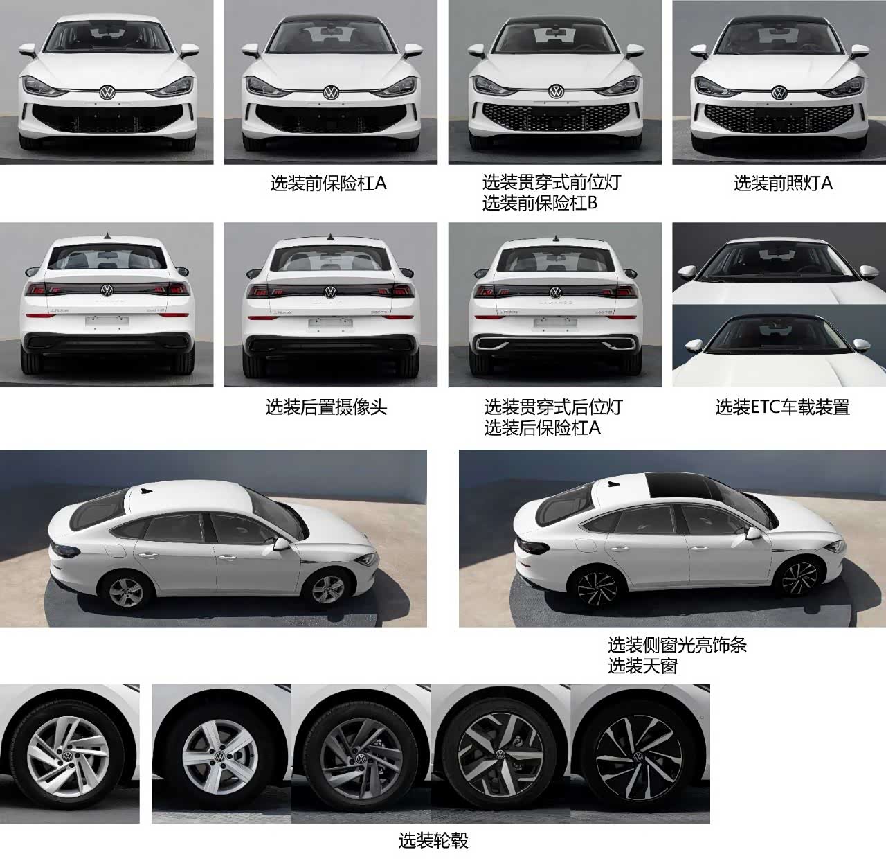 车身尺寸方面,新车的轴距与速腾相同,均为2731mm,长宽高分别为4784mm、1831mm和1469mm,比现款大幅增加。根据工信部披露的信息显示,新车将配备16至18三种规格的轮胎可选,轮毂多达5种。高配车型提供全景天窗。车尾采用贯穿式尾灯设计,依然突出其宽体轿跑的定位。高配车型会在后杠底部增加排气镀铬装饰。
