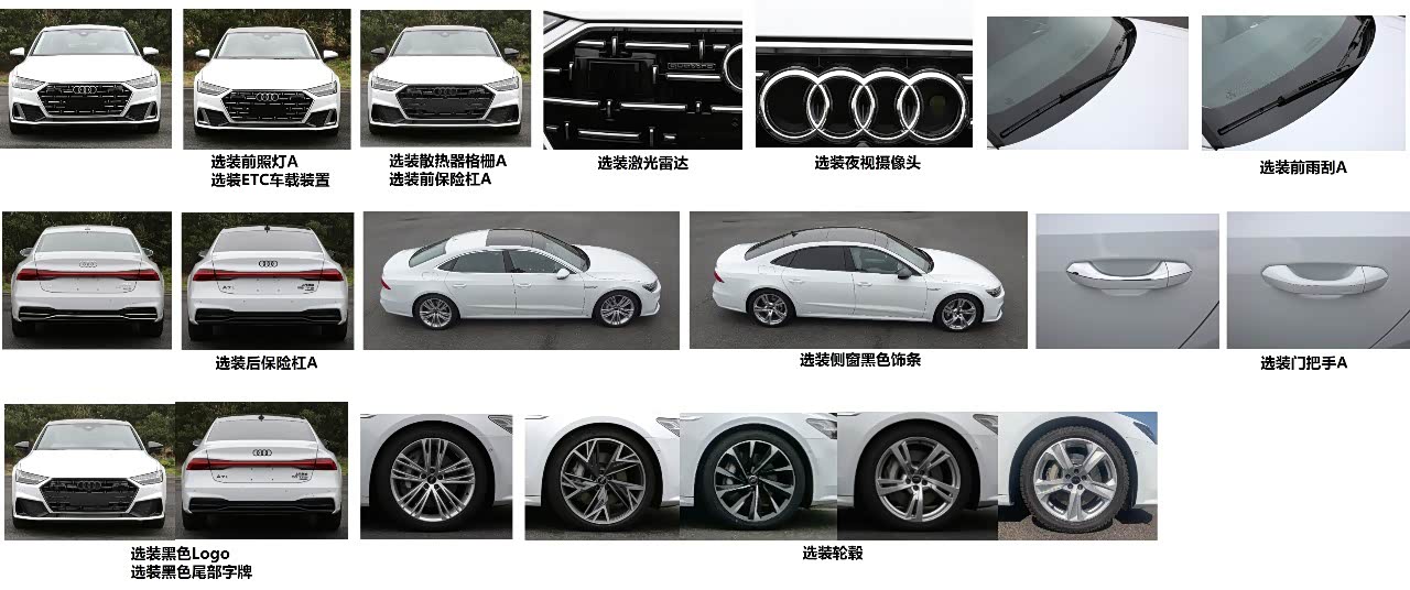 新车的轴距达到3026mm,长宽高分别为5076mm、1908mm和1429mm。轮毂支提供19至21英寸多款可选。配置部分新车标配全景天窗,可选装激光雷达和夜视系统,根据配置不同前后杠也会有一定的差异。另外作为偏运动的车型,国产A7L保留了黑色铭牌的设计。