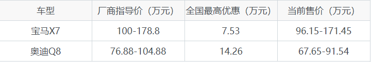 宝马X7和奥迪Q8全系优惠对比
