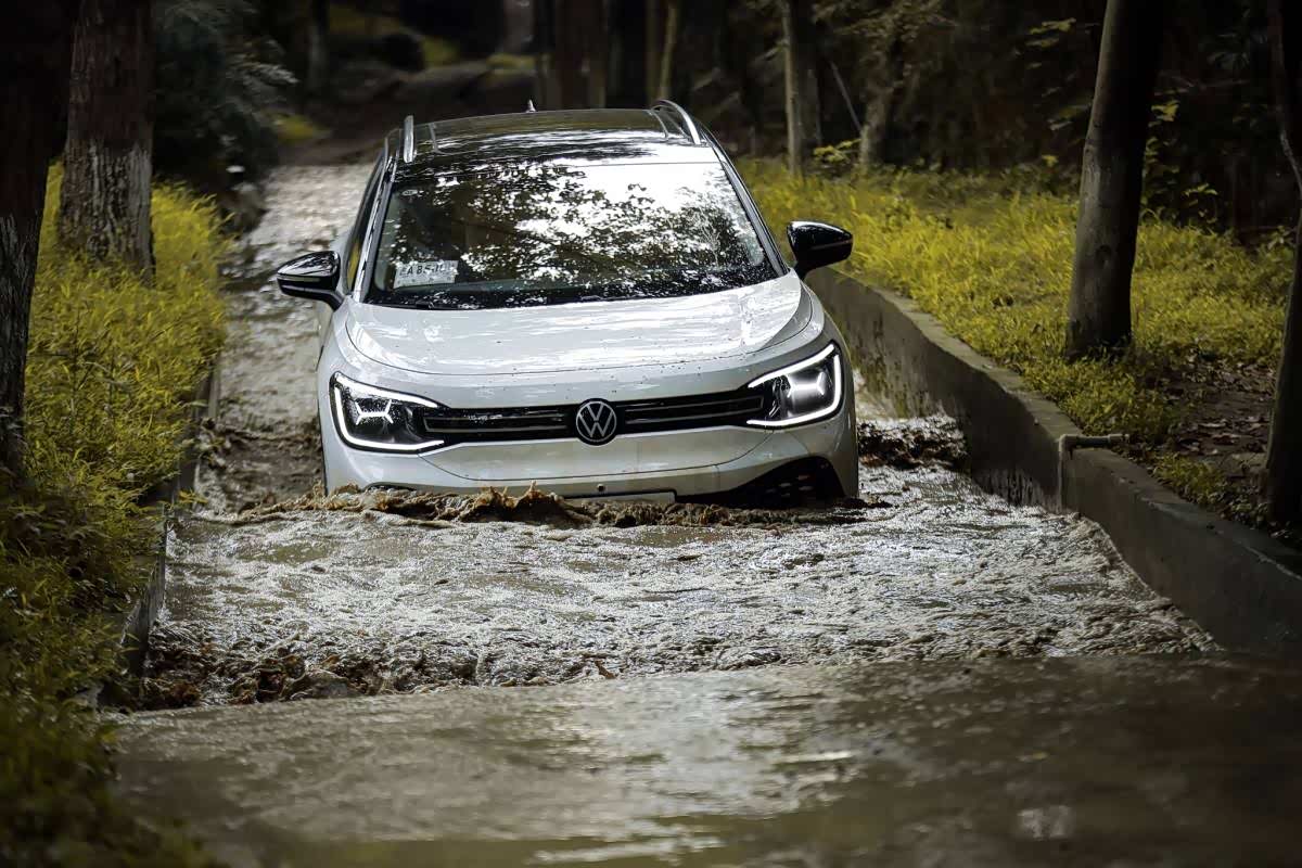 汽车通过性方面,此款车底盘配有DCC动态底盘,适合不同人驾驶。若是底盘调校相对舒适下,即使在坑洼路面上行驶,滤震也非常干脆,几乎没有多余的跳动,整体表现依然稳入人心!若是底盘调教相对运动,会带来更好的加速感,但通过非铺装路面会出现更强颠簸感。此外,ID.6 CROZZ配有很强大的电池密封技术,即使经过半米水深的涉水路段时,也不会出现汽车进水漏电情况。