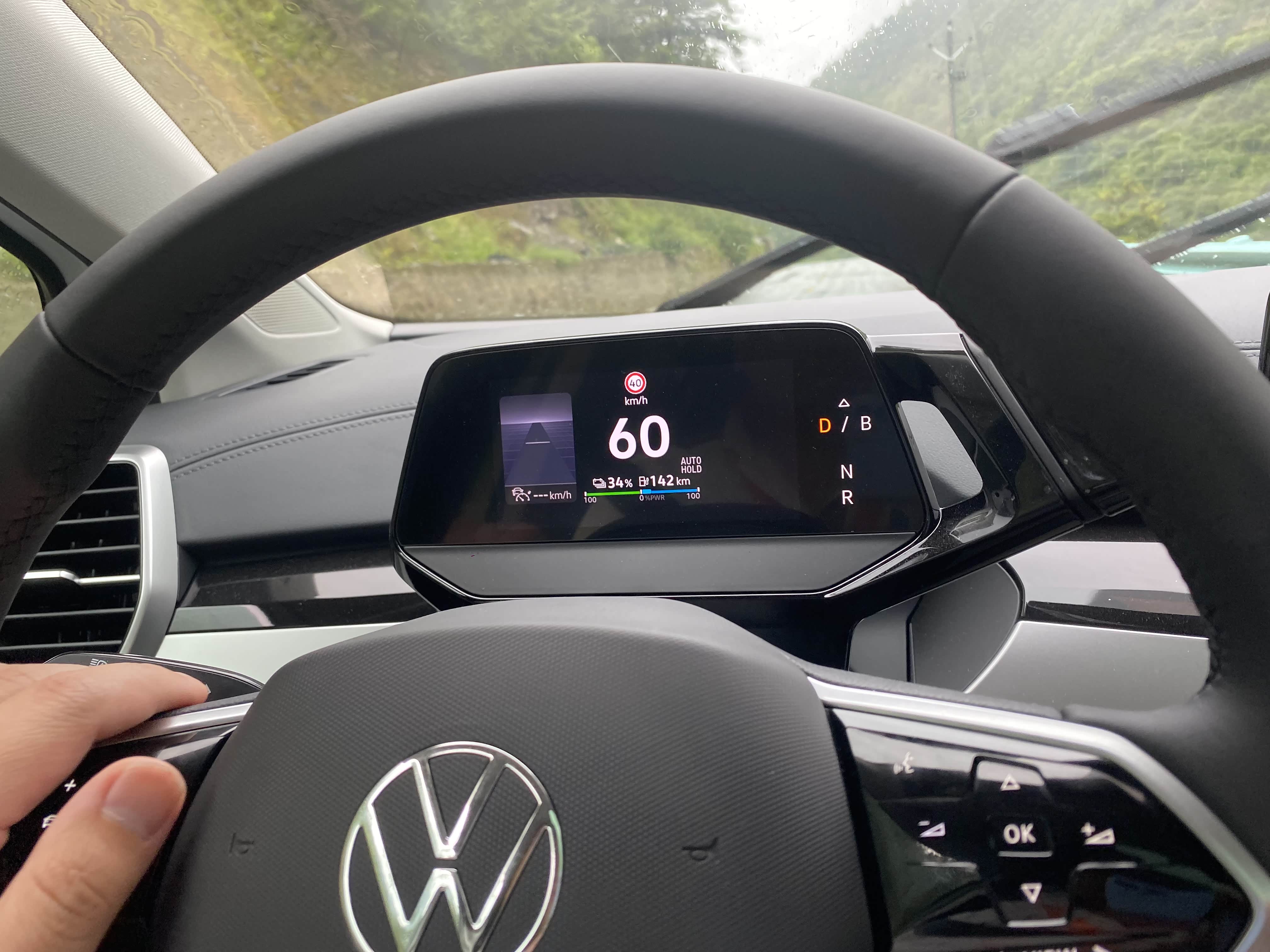 值得一提的是,从折多山-酒店这段路程有很长一段时间行驶在下坡路段。ID.6 CROZZ配有BMS 精益电池管理技术,从提升续航能力、全方位节能、加强能量回收、精准控制电耗以及提升能量利用率五个方面来实现电能的最大化利用。从而达到下坡路段的表显续航里程反而增加了不少。