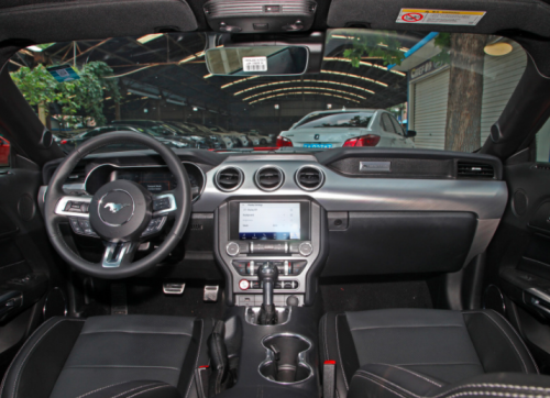 坐进新Mustang车里,你会发现现款采用了许多软性材质。比如中控台,中央扶手及膝部保护区域采用缝线工艺,车门把手、锁扣及车窗控制区表面也覆盖了铝合金材质。虽然细节之处仍能够发现美式粗旷的做工,但总体而言,这并不太像是一台很纯正的美式车应有的粗糙感,能摸的到地方手感颇佳。