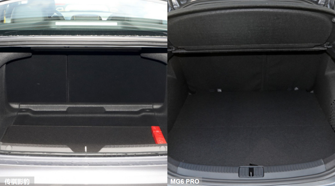 影豹的后备厢空间较为规整,同时后排座椅支持4/6比例放倒,增加了较多的储物能力,MG6 PRO则采用了掀背造型,后备厢开口大,再加上较大的容积,因此要比影豹更能装下大件物品。