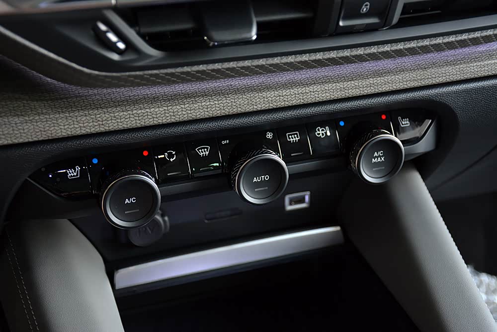 舒适性配置方面,凡尔赛C5 X配备有双温区自动空调,对称式的控制面板操作起来也很便捷,不过没有配备独立状态屏显,但新车为后排配备有独立的空调出风口,并且可独立调节风量。此外,凡尔赛C5 X虽然没有配备全景天窗,不过此天窗尺寸也很不错,一直延伸至后排部分。