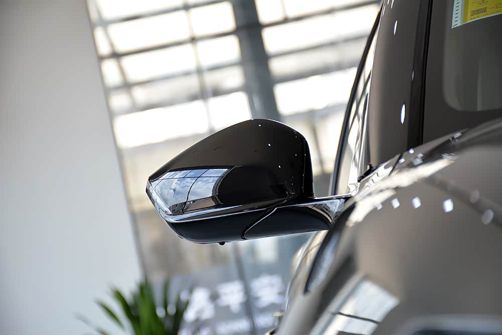 全黑色烤漆涂装的外后视镜造型动感,并且集成有电动调节/折叠功能。此外,新车的门把手设计精致而立体,主驾驶门把手还集成有无钥匙进入功能。