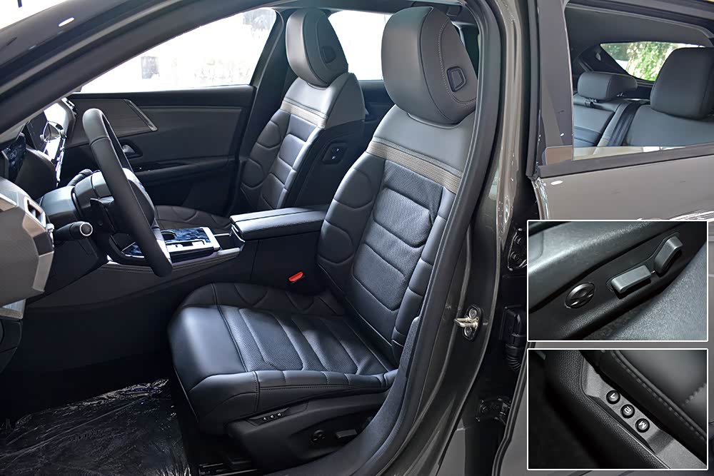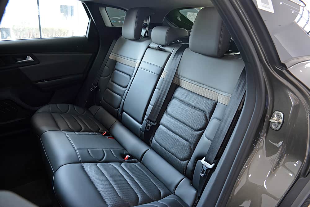 凡尔赛C5 X座椅延续了法系车一贯的舒适性,实拍车型采用了双拼色皮革包裹,座椅整体填充较软,主驾驶座椅配备有多向电动调节、2组记忆功能以及电动加热功能。后排座椅配备有三个独立可调头枕与可收放中央扶手。