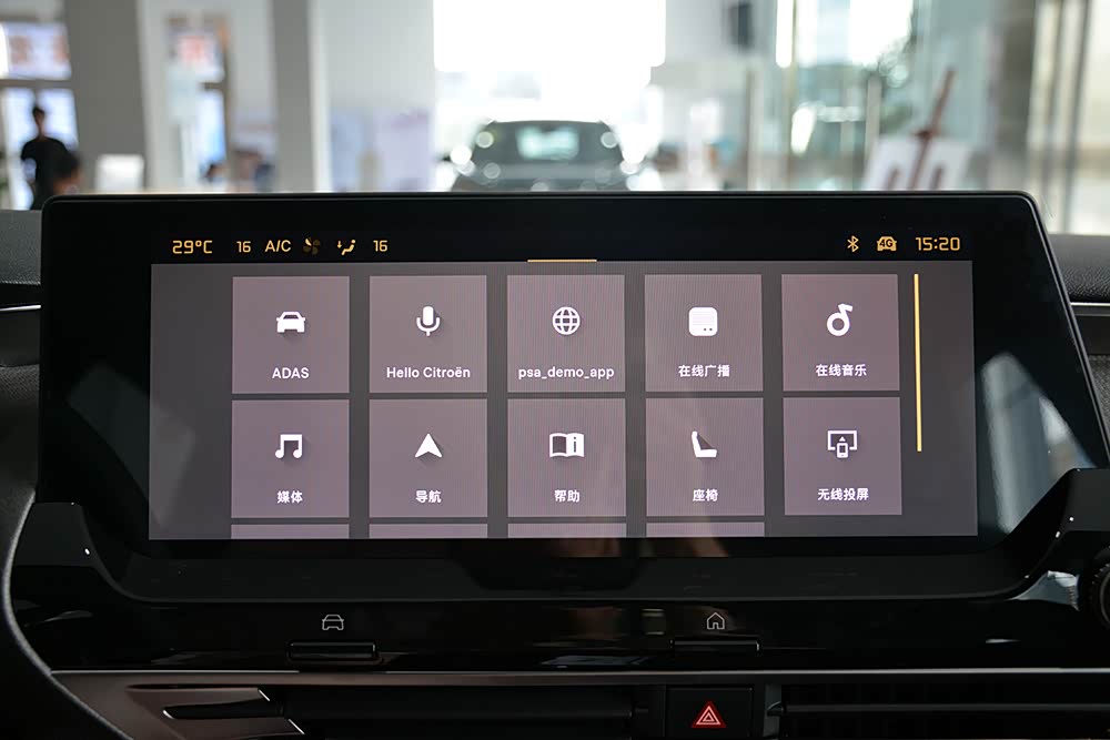 中控台上的10英寸触控屏不仅尺寸上较以往车型有了显著升级,功能方面也搭载了雪铁龙最新一代互联车机系统,此系统集成了影音娱乐、车辆设置、互联应用、语音控制以及无线投屏等多种功能,达到了同级别车型主流水准。