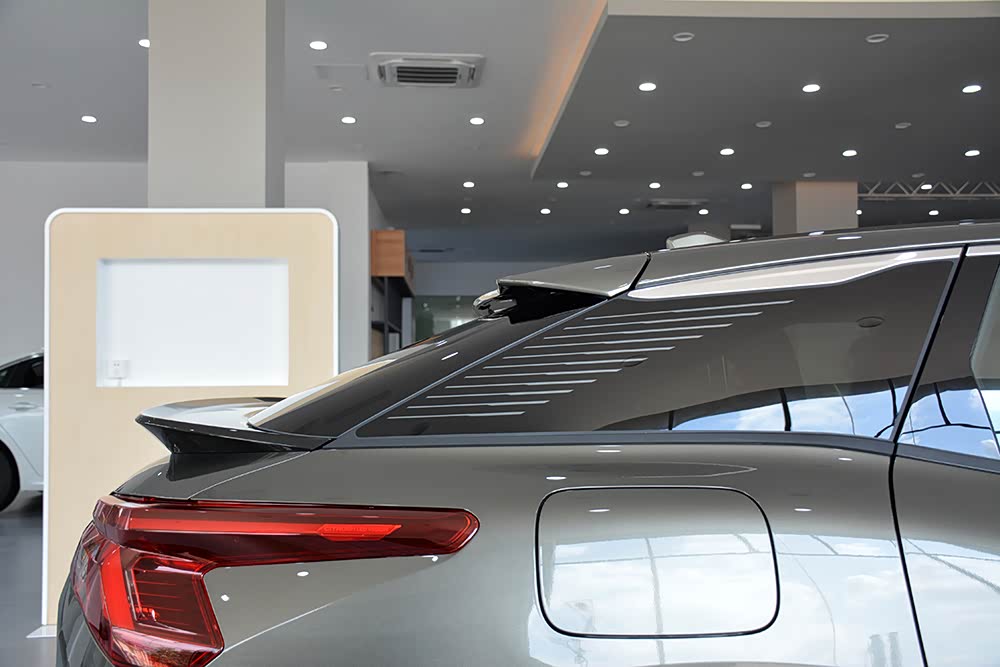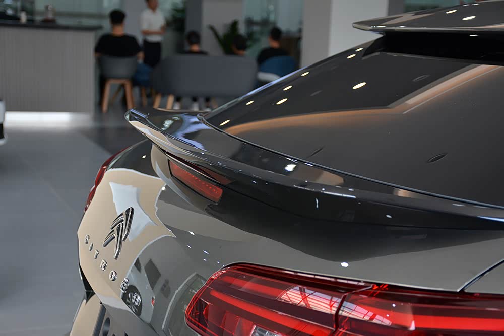 凡尔赛C5 X车尾造型饱满而厚重,宽大的黑色后包围看上去充满力量感,而双尾翼设计不仅带来了强烈的运动气息,也让车尾造型更富层次感。