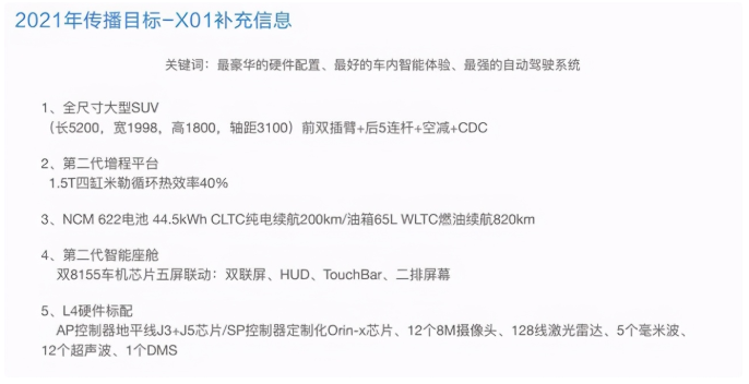 新车的配置也是非常惊艳,理想X01试图打造第二代智能座舱,双8155车规级芯片加成,能够实现五屏联动。另外,新车还支持L4级别的智能驾驶硬件,涵盖了AP控制器地平线J3+J5芯片、12个8M摄像头、128线激光雷达、5个毫米波雷达、12个超声波雷达以及1个DMS,很明显,理想X01在为L4级别自动驾驶做铺垫。虽然当前行业不允许,但是有备无患总是好的。