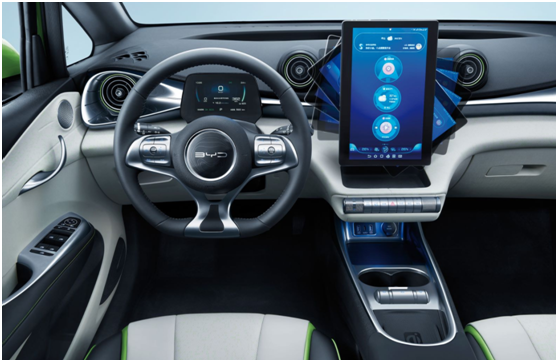 首先,作为一款10万元级的纯电动车,海豚的配置远远高出飞度,致炫,大众polo等燃油车。海豚提供了包括手机无线充电功能、12.8英寸8核自适应旋转悬浮Pad、超大尺寸全景天幕等功能;另外,LED大灯、手机NFC车钥匙与蓝牙钥匙等配置,海豚都是全系标配的。