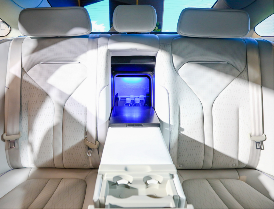 此次小鹏P5所选的英得尔智能冰箱为17.2L,可容纳24罐330ml的可乐。后排中央扶手后方的设计使得取物方便的同时,更具有隐蔽性。在不打开隔门时,冰箱100%隐藏,不占用任何空间。此外,用户可以通过大屏或语音完成对冰箱-6℃、0℃、6℃三挡温控调节,应对不同场景需求。