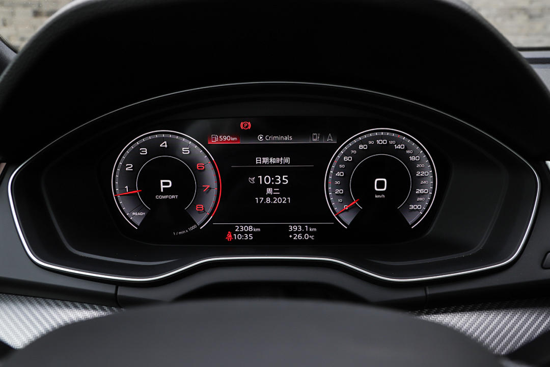 转向力度相对适中,和印象中主流的奥迪车型有所不同。即便在舒适模式下,转向手感也并不是“轻飘飘”的一类;而在动态(Daynamic)模式下,转向力度会更重一些,同时阻尼感更加紧致,但并不过分地发沉。