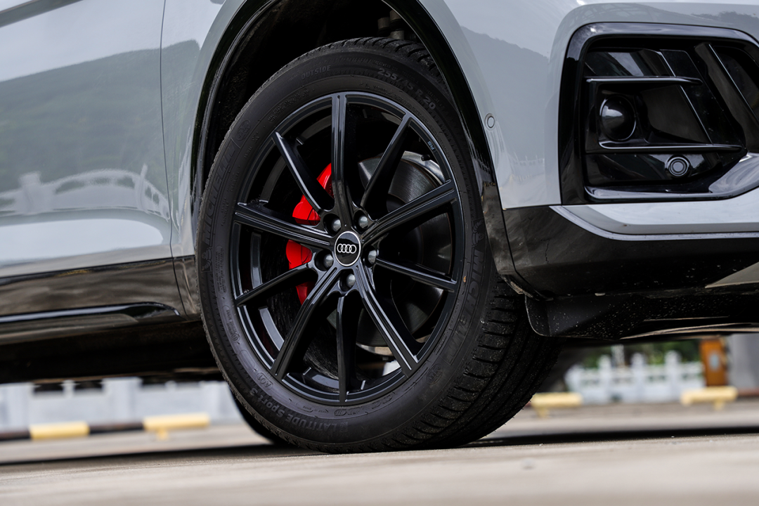 灯组造型与奥迪Q5L一致,给人的感觉依旧很酷。矩阵式LED大灯仅在高配车型上配备,其余车型需要选装,价格为8000元。全新样式的20英寸十辐轮圈享受“特殊化”待遇,采用更张扬的黑色涂装,并搭配红色卡钳,心理马力至少提升10匹。