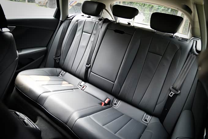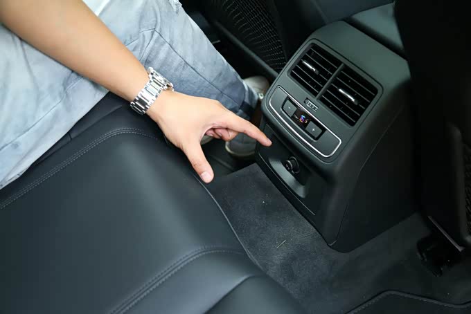 保持前排座椅位置不变的情况下体验者来到后排,腿部空间一拳余量,头部空间剩余两指,空间上相比起加长轴距的奥迪A4L明显紧凑了不少,并且后排中间地板的凸起很高很窄,因此中间座位的舒适性表现一般,整体来看奥迪A4 allroad quattro探索家 觅境版的后排空间表现只能算是及格够用水平,并没有什么优势。