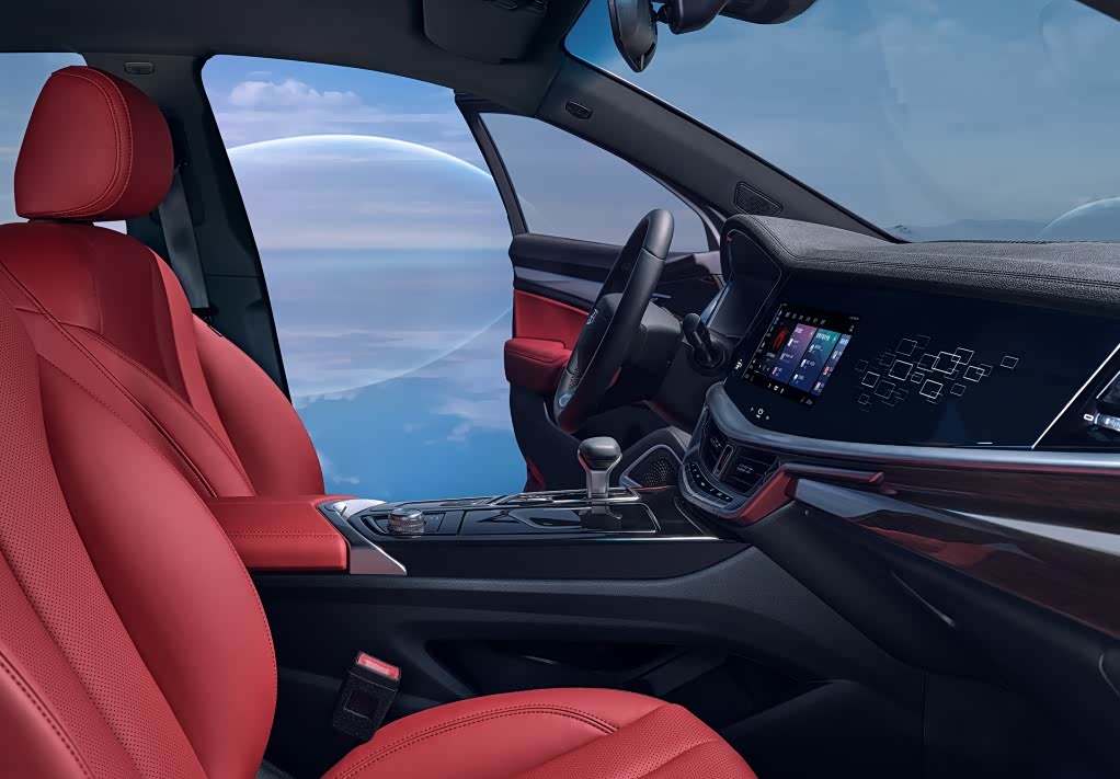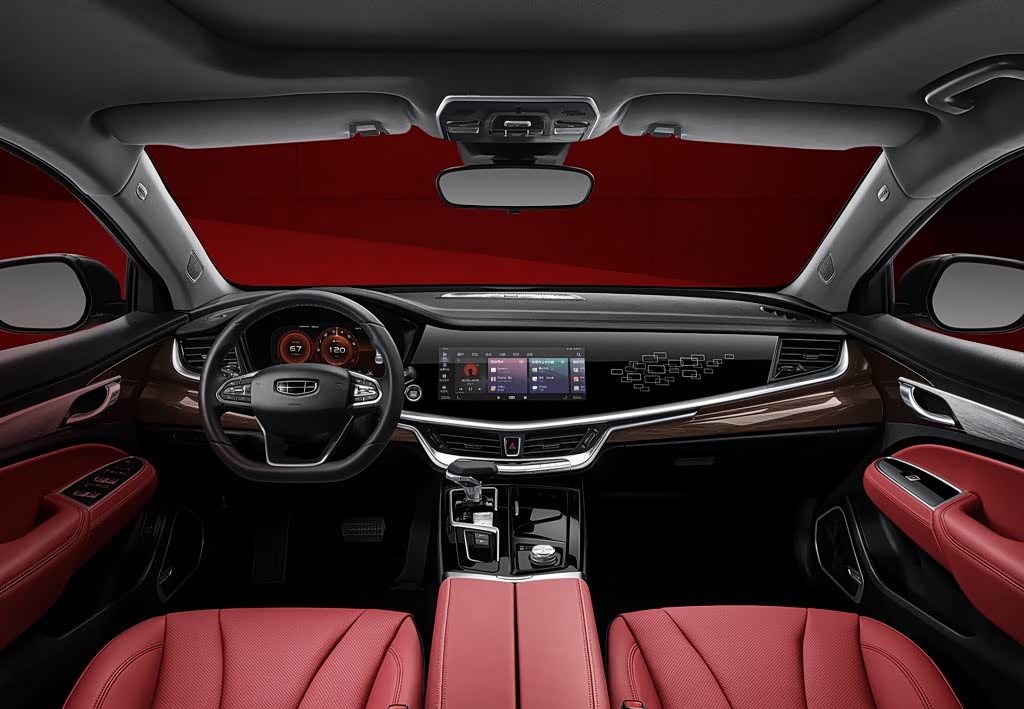 吉利博瑞采用了家族化的内饰设计手法,12.3英寸的嵌入式中控屏和12.3英寸的全液晶仪表盘都充满了时尚感,它支持语音控制系统、蓝牙电话、车联网、OTA升级等各种常用配置,功能强大,操作方便。它的座椅、车门内装饰板、中央扶手等处均为红色格调,其余部分则为黑色,不过这种大开大合的色调,一部分家庭用户可能会不太适应。