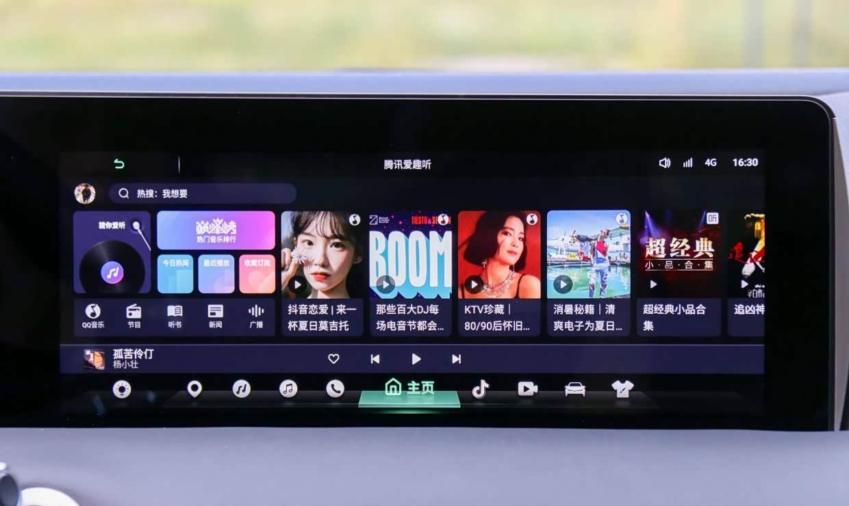 底层菜单的中间按键就是主页面的返回按键,再次点击就能进入车机系统的主菜单了。实际上主菜单里的功能顺序都是可以调节的。当然还有一些快捷菜单,从屏幕顶部往下滑就能看见,有电尾门的开关、行人提示音开启/关闭、以及蓝牙和个人热点开关等,十分方便。
