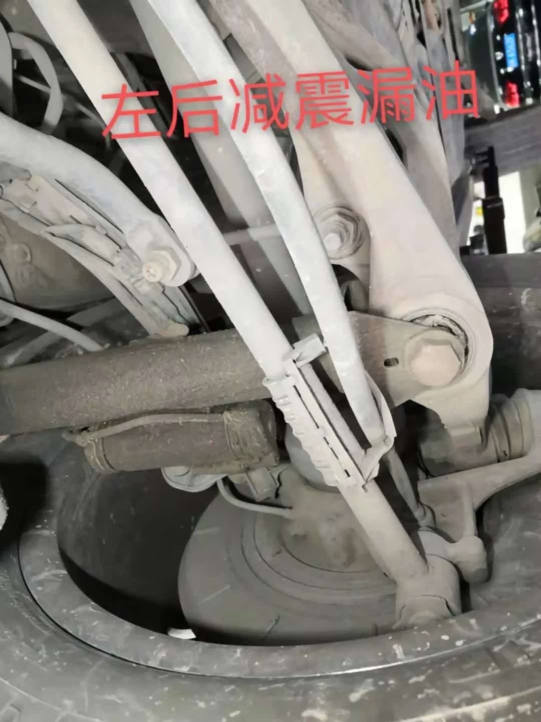 车子先安排上架,对底盘进行初步检查,发现减震器漏油挺严重,看着油渍包浆的状态有些年头了。