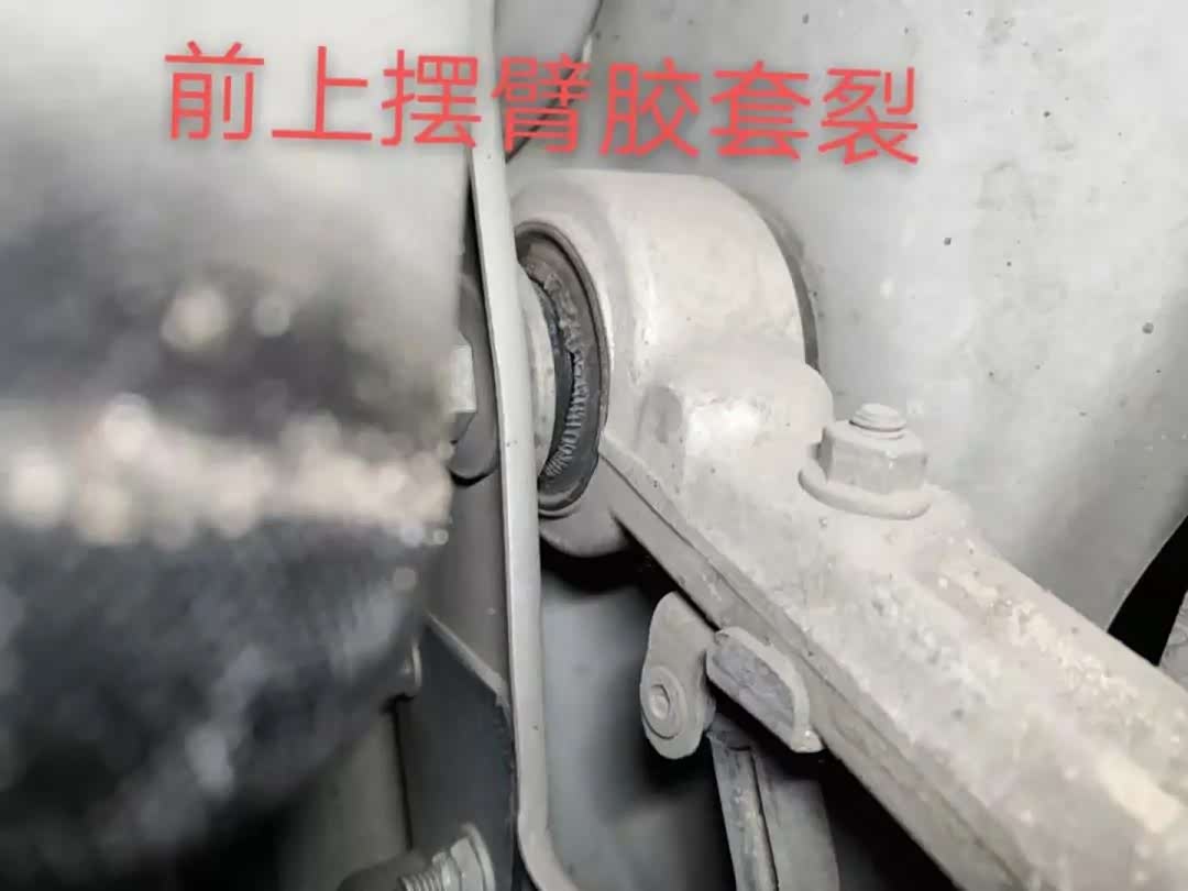 前上摆臂胶套老化开裂,而且已经严重变形了,有明显的旷量。