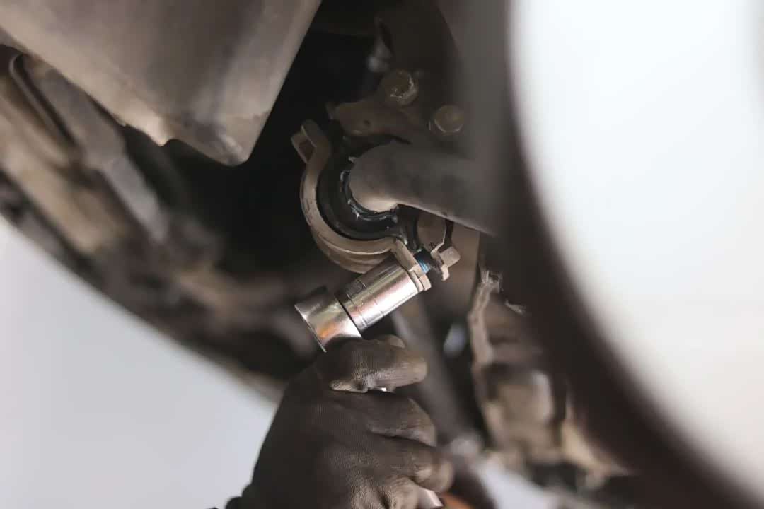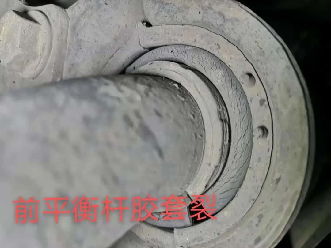前平衡杆胶套依旧是老化开裂,矿量也很明显,这块胶套很容易被大家忽略,其实这里很重要!