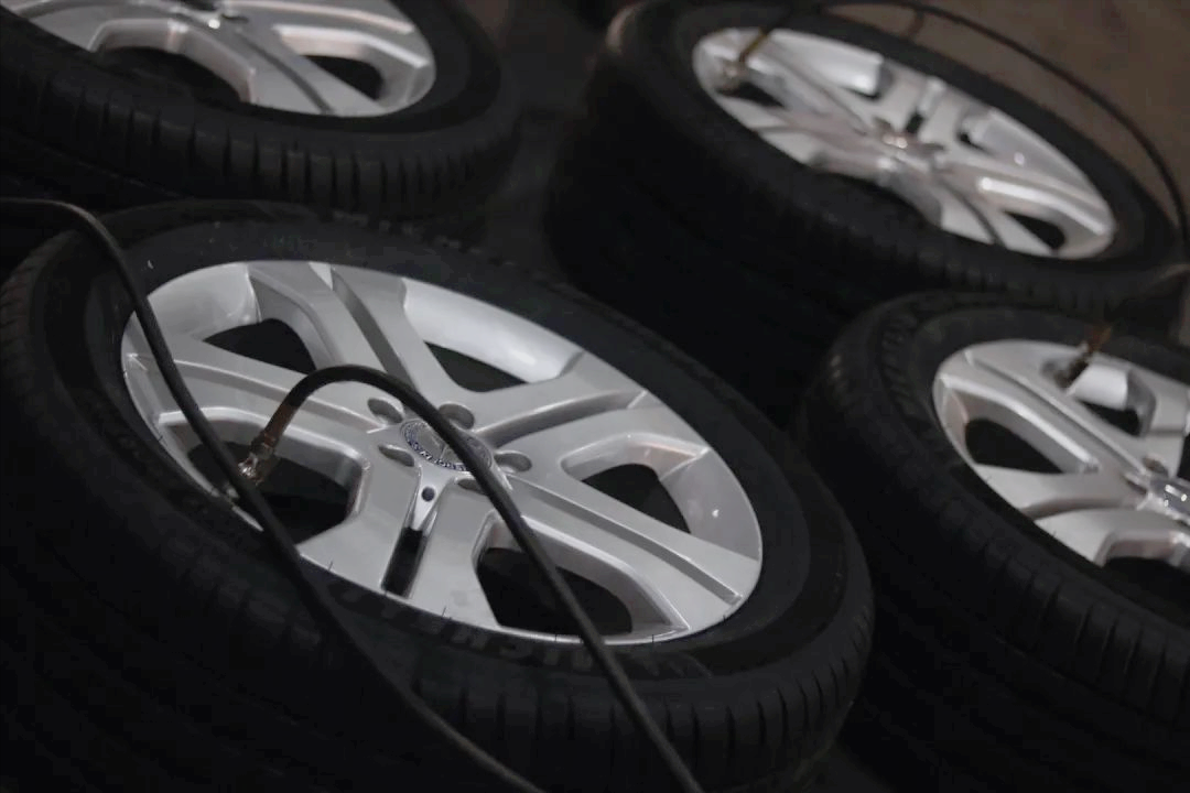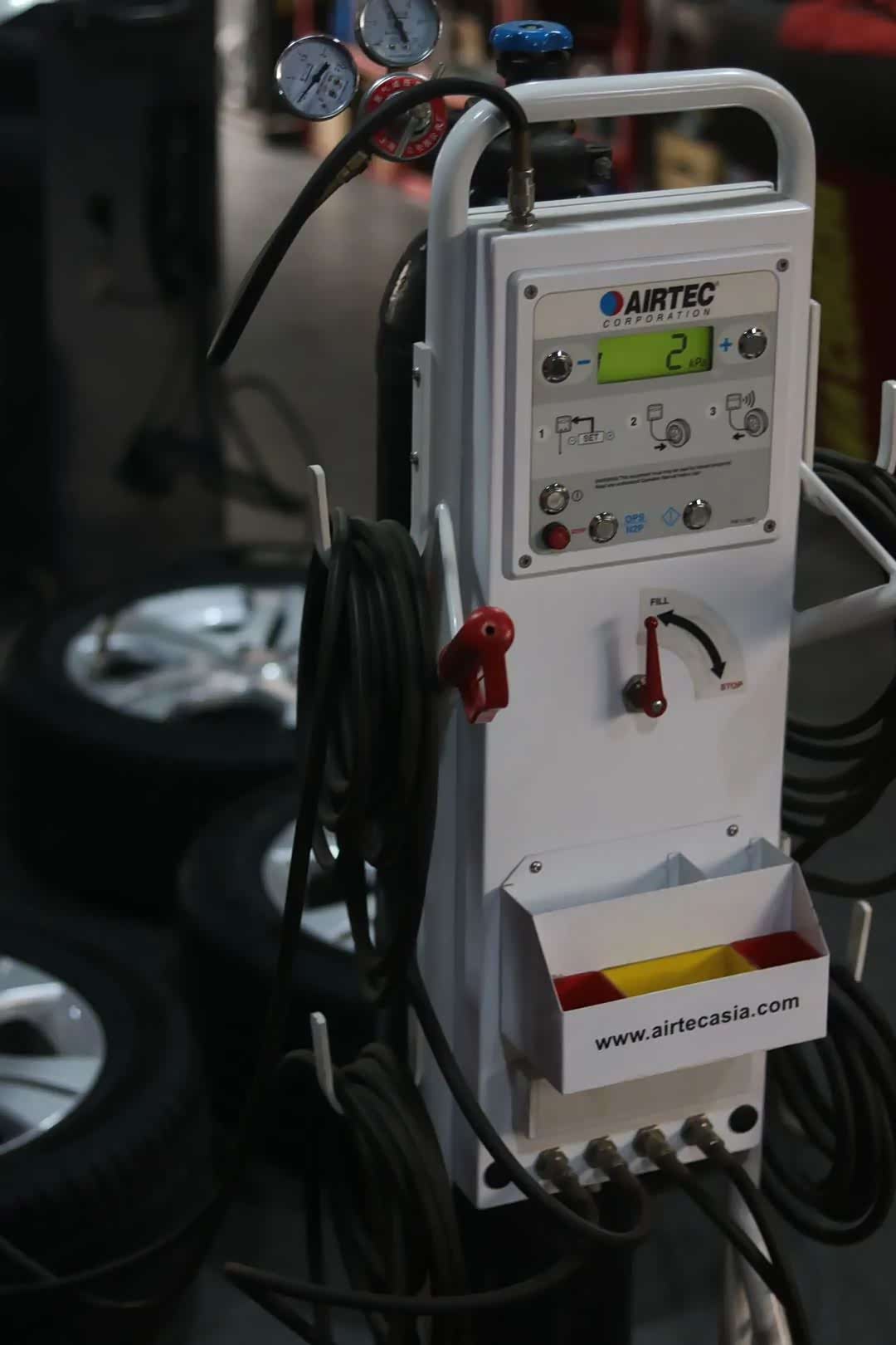 进行轮胎氮气填充,四个轮子同时充气,爽歪歪。