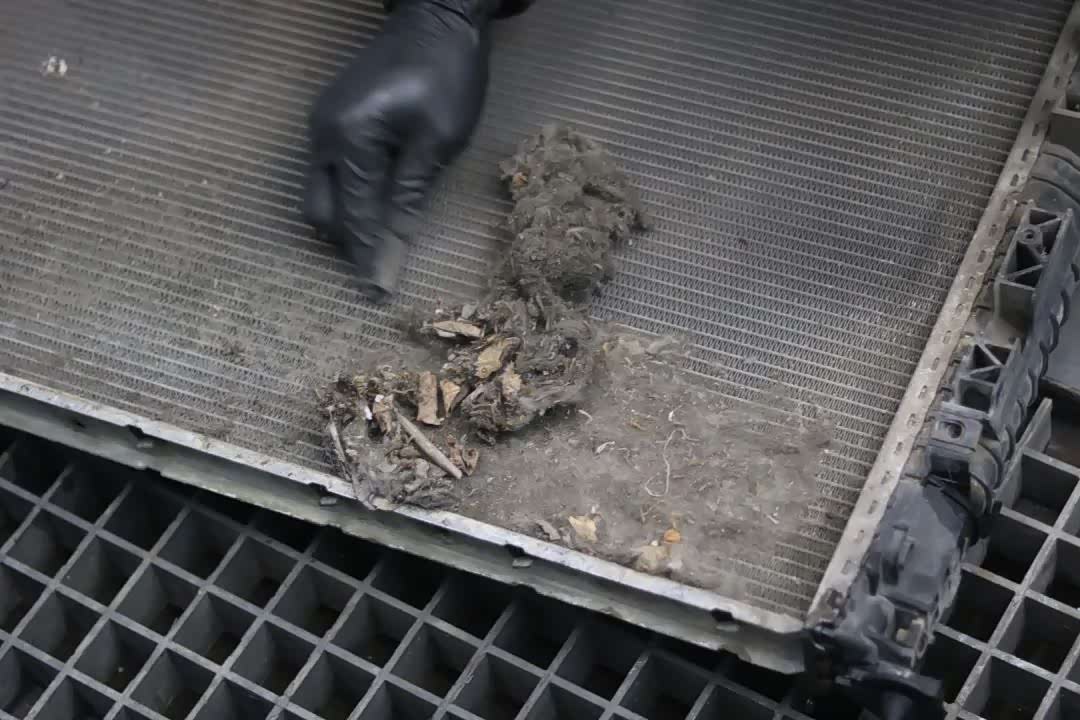 开搞了,前脸做好保护,准备先拆除检查一下散热系统状态。