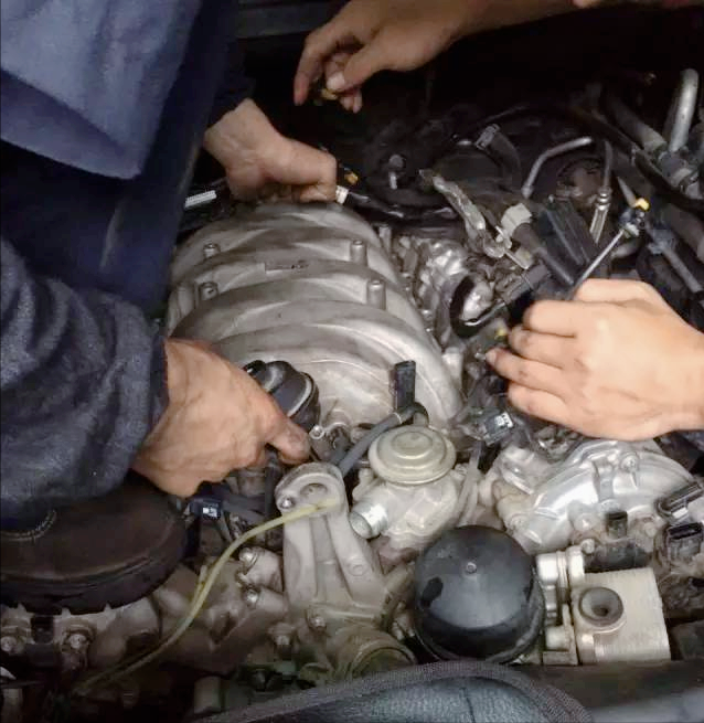 拆卸时千万注意,不要损坏到周围的橡胶管路和老化线束。