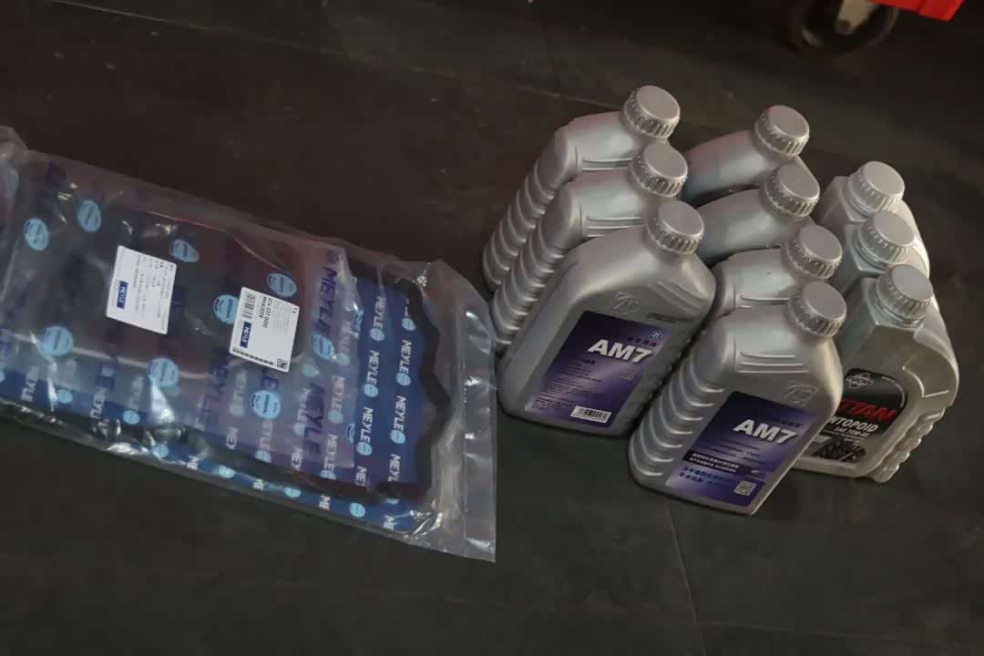 更换变速箱滤芯、油底壳密封垫、变速箱油液、差速器油液等。