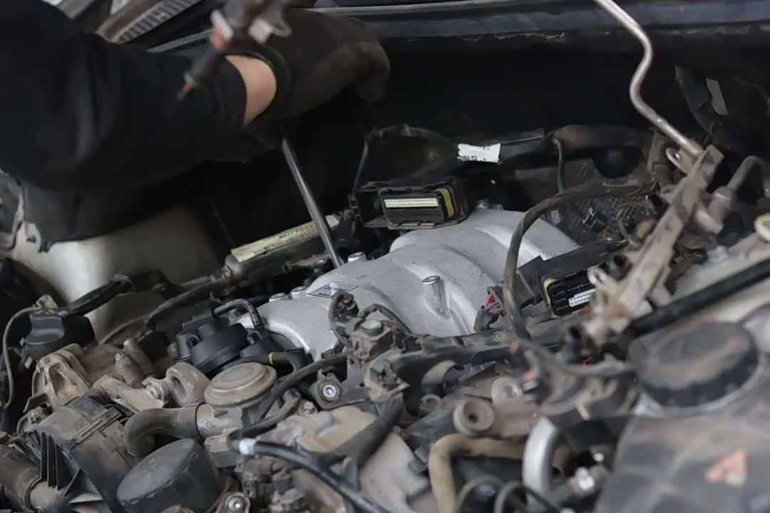 深度检查M272发动机状态,居然发现进气歧管的拉包是断裂的,拉包断裂后会导致发动机加速无力、油耗升高、更容易产生积碳,这个算是M272发动机的通病。