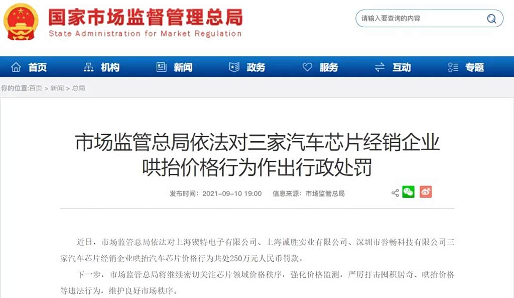 多数车企为了芯片是争得焦头烂额,以往采购芯片,车企们都是按产能规划和进度规划等方面进行规范操作,而现在,市场上有多少就要多少,并且每家车企面对同样有着需求的其它企业,除了其它车企,还有笔记本、手机等数码公司,争抢程度空前激烈,哪怕用上“关系”也尽量要全盘拿下。当然,这从中主要还有两方面因素的延展,一方面是芯片短缺以及采购芯片价格上涨,都会导致新车价格或者是以往终端优惠没这么大了,那么消费者的购入成本在这一阶段内就会随之上涨,国家为了杜绝这一现象,在之前已出台相关规定政策,例如在9月10日,国家市场监督管理总局官方发布“依法对三家汽车芯片经销企业哄抬价格行为作出行政处罚”的公告。对上海锲特电子有限公司、上海诚胜实业有限公司及深圳市誉畅科技有限公司哄抬汽车芯片价格行为共处250万元人民币。而至于新车“回收”市场终端价,只是4S店们没有办法的办法,大家都是要吃饭的。