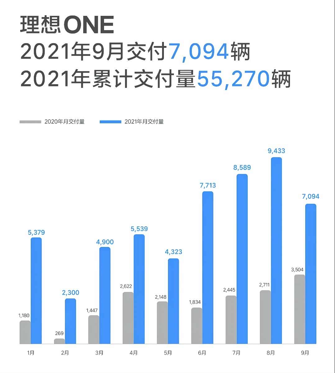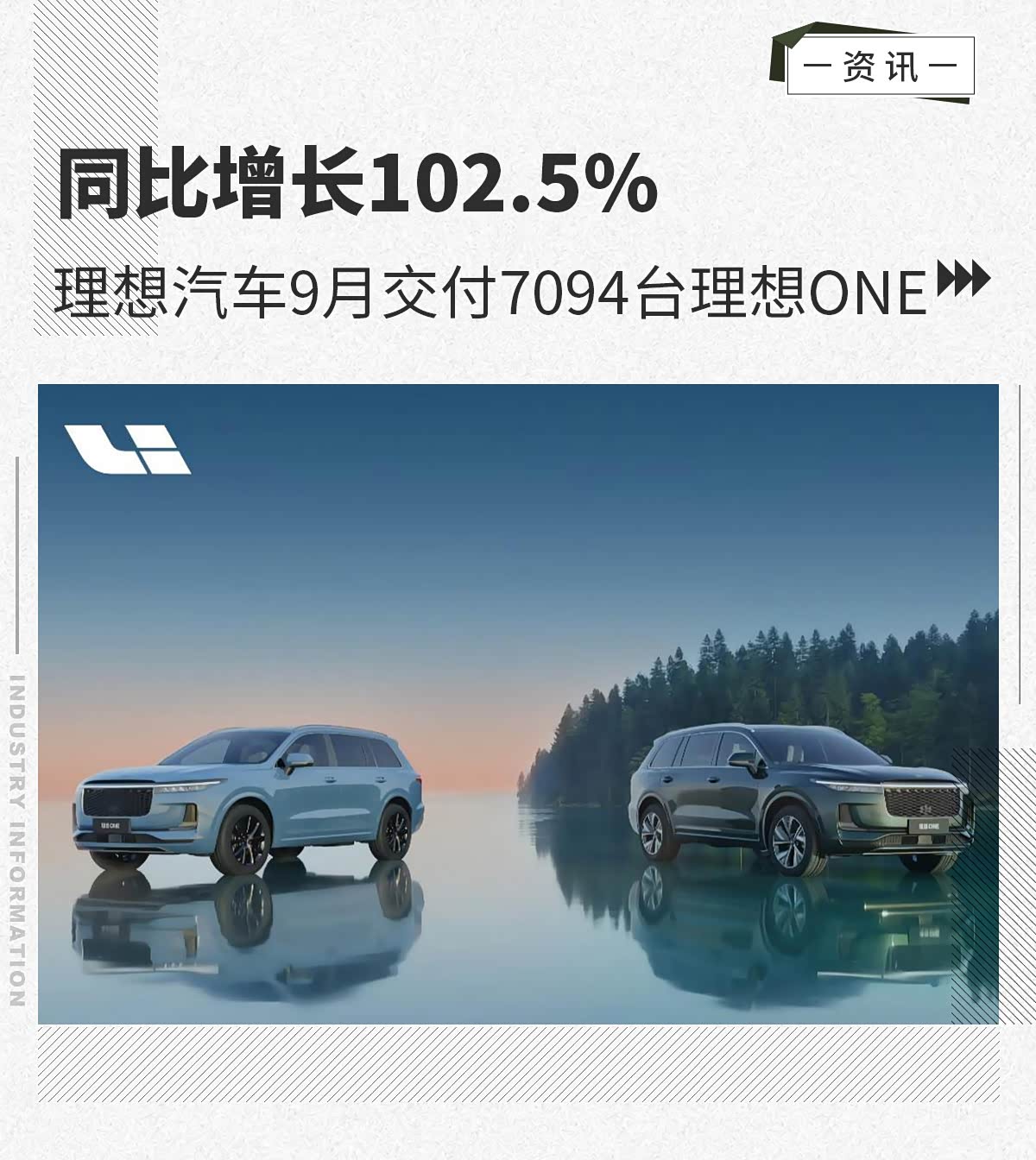 同比增长102.5% 理想汽车9月交付7094台理想ONE